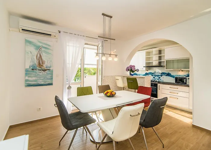 Das 1-Zimmer-Apartment Vera Luxury liegt im Stadtteil Borik, in einer Entfernung von 48 Autominuten vom Flughafen Pula. Das Apartment bietet auch Parkplätze vor Ort.